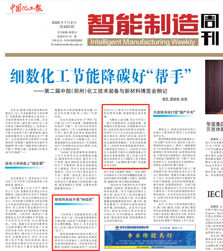 《中國(guó)化工報(bào)》:優(yōu)納新材替供熱系統(tǒng)開具“特效藥”